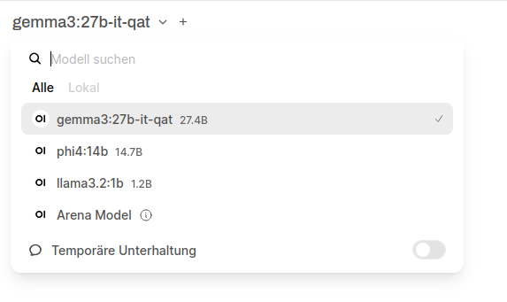 Diese Modelle sind nach dem ersten Start bereits in Ollama verfügbar und können direkt in OpenWebUI verwendet werden.